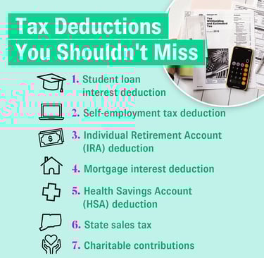 Many taxpayers miss out on deductions they’re eligible for. Some of the most common include: